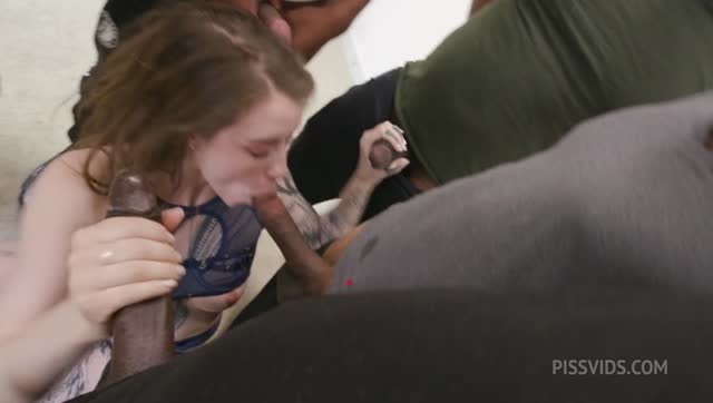 FIRST DAP WITH PEE! Babe Caller Bowl gets double anal penetration and pee spurts from six big cocks