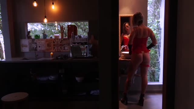 The joys of short skirt, no panties!