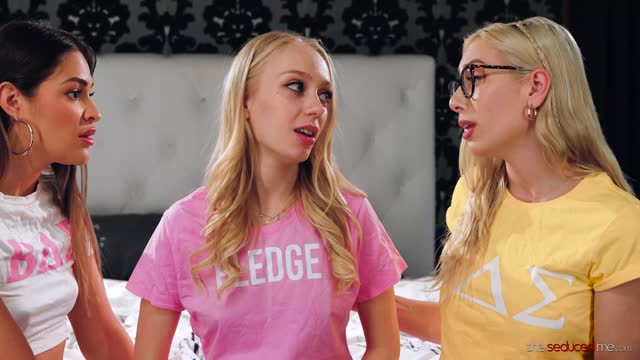 18 year old co-ed DP'd by 3 hot lezdoms for the 1st time!