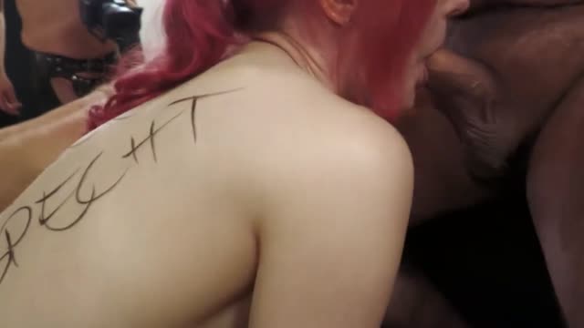 Redheaded sybian slut Violet Monroe does drooling deepthroat on BBC bound in brutal strappado!